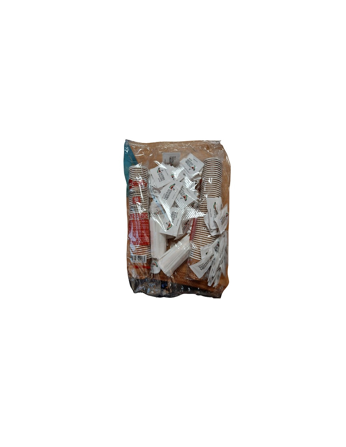 Il kit LolloCaffè prevede la fornitura di tutto il necessario per consumare ed offrire il caffè: zucchero extrafine, bicchieri in carta + palettine in legno con incarto bio in confezioni da: 100 pz